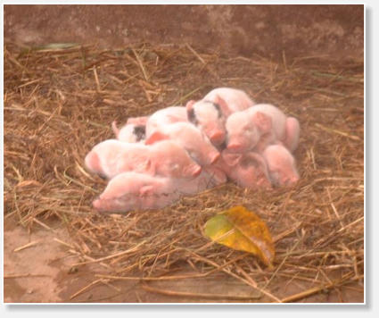 Schweinchen wohlig beieinander. In den kommenden Tagen wurden alle Ställe mit EM